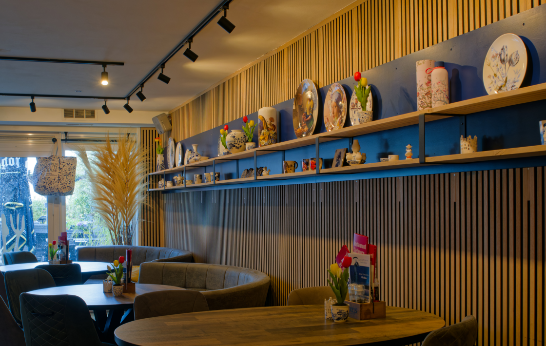 Our restaurant is fully styled in authentic Delft Blue décor — from plates and cups to unique decorative pieces that give the entire space the look of a charming exhibition. Guests can even purchase their favourite Delft Blue plate or mug to take home as a memorable souvenir.